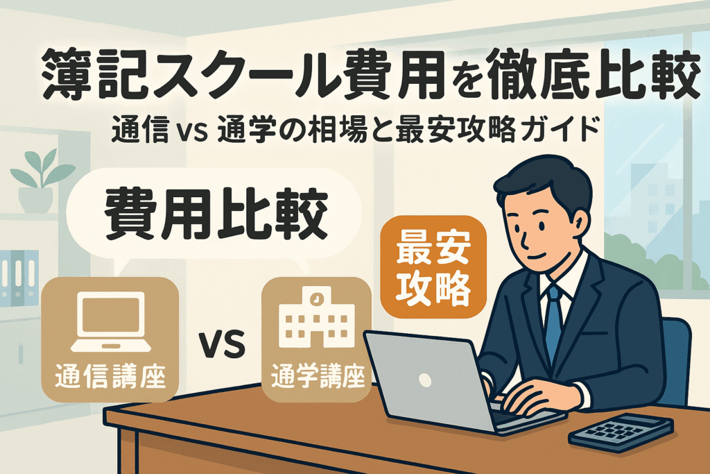 「通学と通信、結局いくらかかるの?」——そんな疑問に、相場と総額の視点で答えます。例えば簿記3級は通信で約1万円台~3万円台、通学は約3万円台~6万円台。2級は通信で約2万~6万円、通学は約6万~15万円、1級は長期化で10万円超も珍しくありません。受講料だけでなく、教材・模試・質問対応・交通費まで含めて見直すと差はさらに広がります。