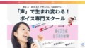 個別レッスンのボイストレーニングキッズでは、表情豊かで自己表現ができる子になりたい、学校では習わない歌唱法を身に付けたい、歌のコンクールに出たい、アイドル・シンガーを目指したい方に対し、遊びの中で声や体を使いながら自然に発声を身につけます。表現豊かに、丁寧に一曲ずつ仕上げることを大切にし、お子さんのペースでレッスンを進めていきます。グループレッスンの「リトルVoice」は小学1〜3年生と4〜6年生に分かれ、年間24回の60分レッスンで月額8,800円、個別レッスンのフリー予約1回も付いており、仲間と共に成長する環境を提供しています。